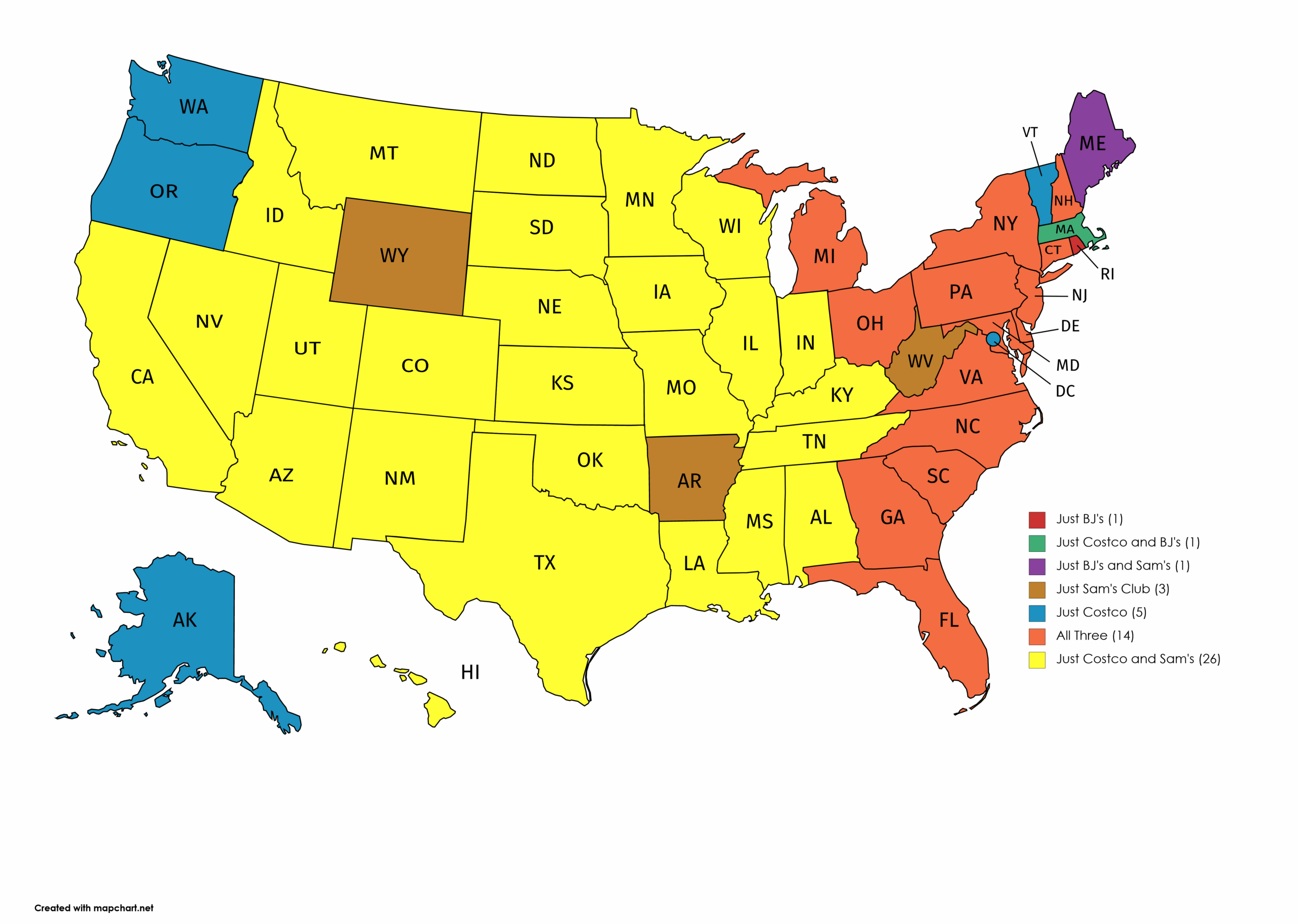 Warehouse Storesstate (Bj'S, Costco, Sam'S Club) : R/Mapporn inside Map of Sam's Club Locations In USA”]